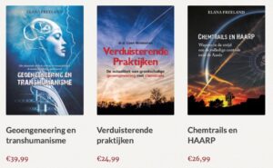 Verdiep je in wat er werkelijk boven onze hoofden gebeurt. Lees, kijk, vergelijk, en vorm een eigen oordeel. Begrijp in grote lijnen wat contrails zijn, wat chemtrails kunnen zijn, en waarom dit onderwerp zoveel weerstand oproept. Alleen wie weet waar het over gaat, kan er zinnig over spreken. Een goede start is mijn boek Verduisterende Praktijken omdat het heel toegankelijk en overzichtelijk is. Ik heb daarnaast twee boeken van Elana Freeland vertaald waarbij haar boek Geoengineering en Transhumanisme heel diep gaat en een overzicht geeft van niet alleen “chemtrails” maar ook toxische stoffen en elektromagnetische straling in het algemeen.